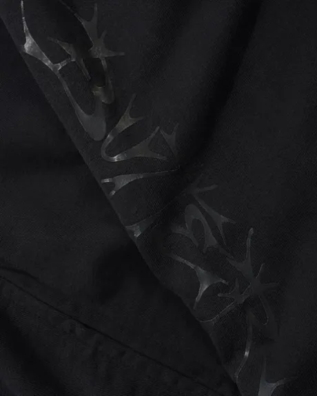 - Cracked screen print on arms