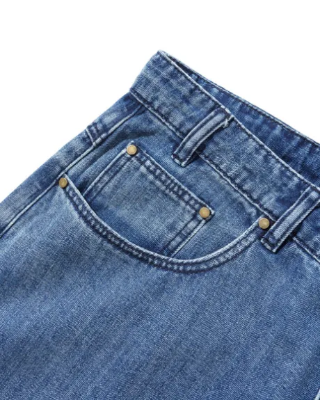 - 100% Cotton Wide Cut Denim Jeans, Darts At Knee